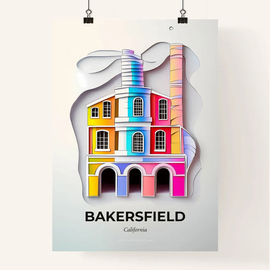 Vivid Bakersfield, California - a colorful building with a chimney and a rainbow colored chimney