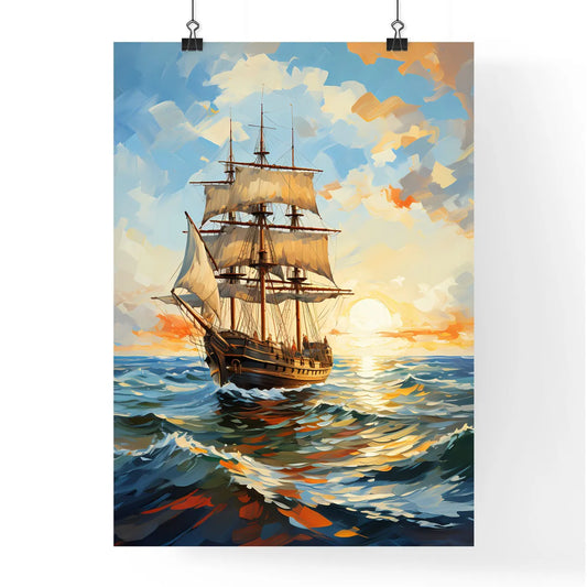 Replica Ot Vessel Santa Maria Is Passing The Port - A Painting Of A Ship In The Ocean