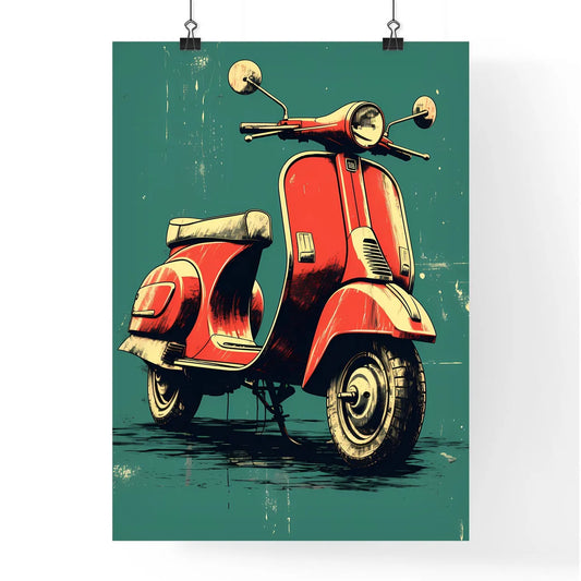 A Red Scooter On A Blue Background Art Print