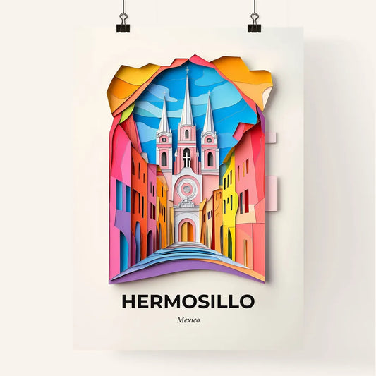 Vivid Hermosillo, Mexico - a paper cut of a church with a rainbow colored roof