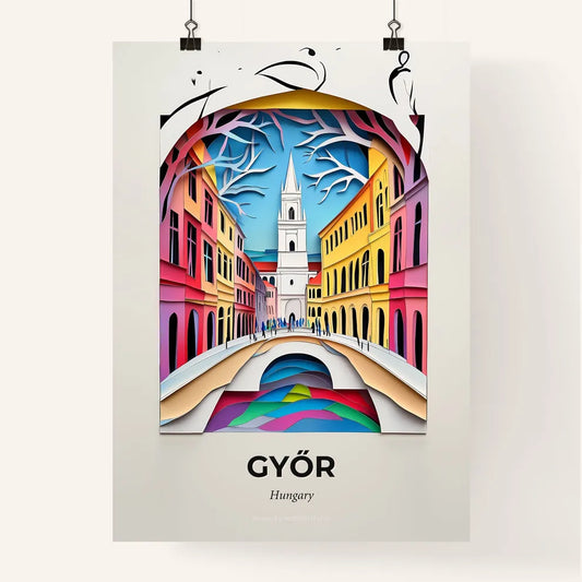 Vivid Győr, Hungary - a paper cut of a city with a bridge