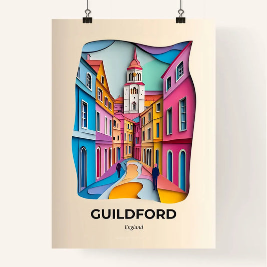 Vivid Guildford, England - a colorful city with a clock on the wall