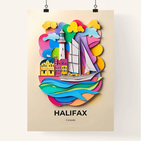 Vivid Halifax, Canada - a paper cut of a sailboat in the ocean
