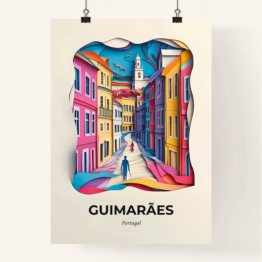 Vivid Guimarães, Portugal - a paper cut of a person walking down a street