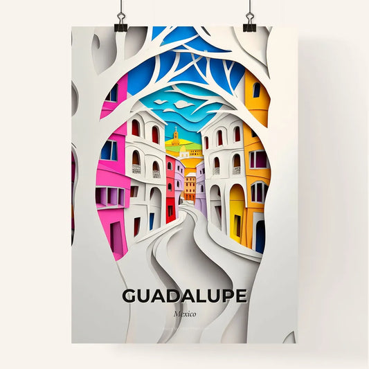 Vivid Guadalupe, Mexico - a paper cut of a city with a tree