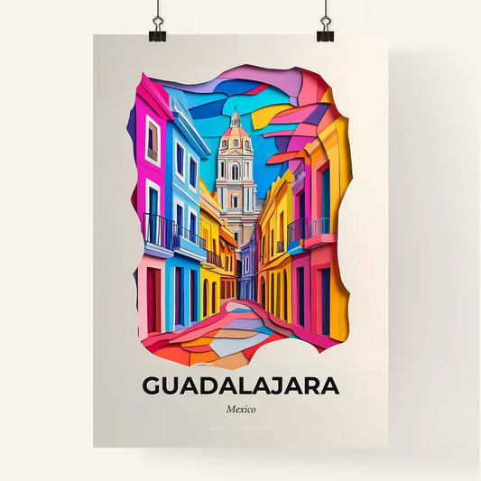 Vivid Guadalajara, Mexico - a paper cut of a city street with a church