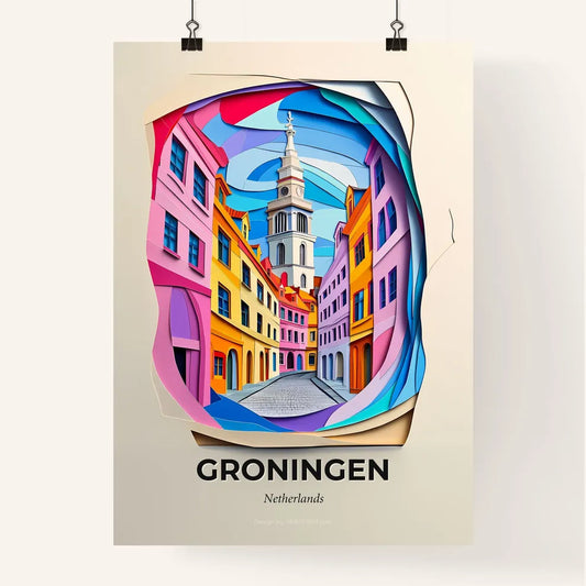 Vivid Groningen, Netherlands - a paper cut of a city with a clock tower