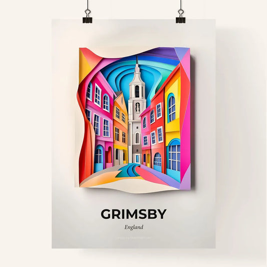 Vivid Grimsby, England - a colorful city scene with a clock tower