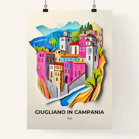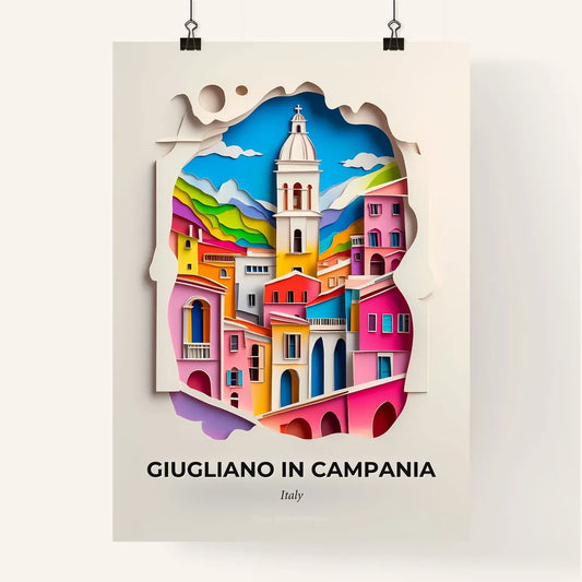 Vivid Giugliano in Campania, Italy - a paper cut of a city with a clock tower