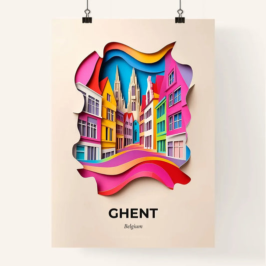 Vivid Ghent, Belgium - a paper cut of a city with a rainbow wave