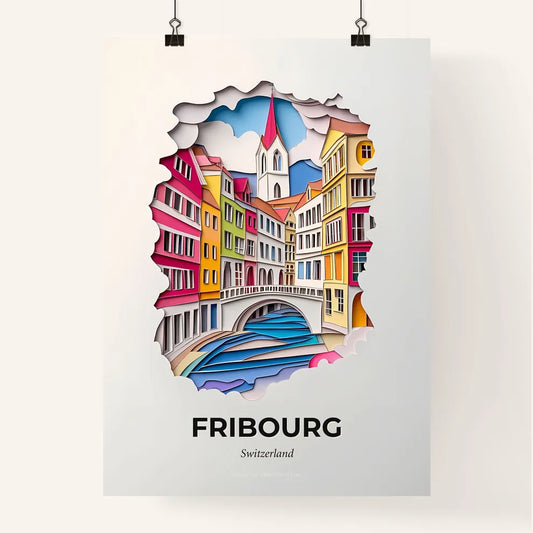 Vivid Fribourg, Switzerland - a paper cut of a city with a bridge