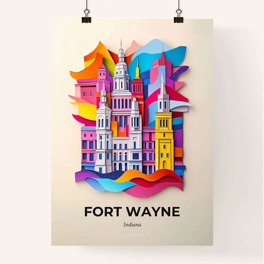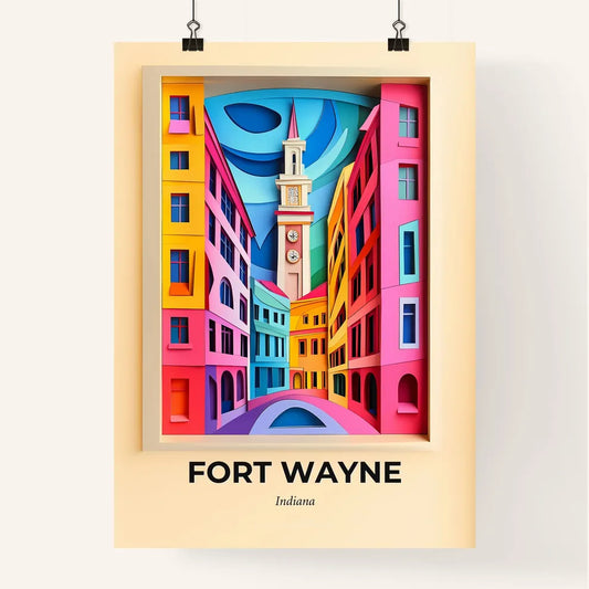 Vivid Fort Wayne, Indiana - a paper cut of a city street with a clock tower