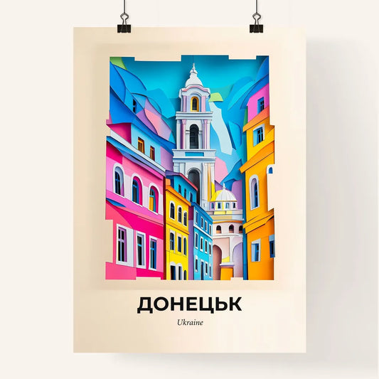 Vivid Donetsk, Ukraine - a painting of a church tower in a city