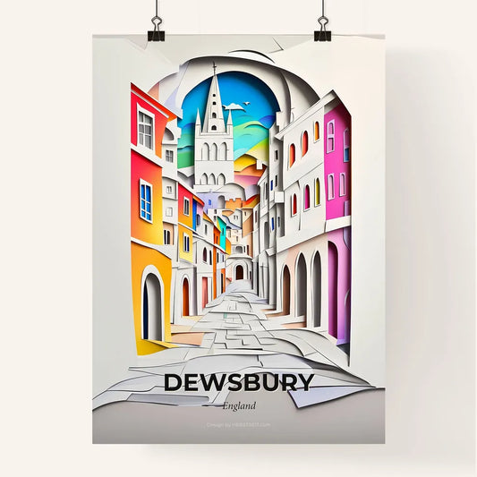 Vivid Dewsbury, England - a paper cut of a city with a clock tower