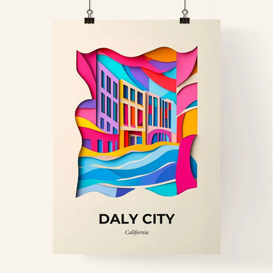 Vivid Daly City, California - a paper cut of a city with a clock tower