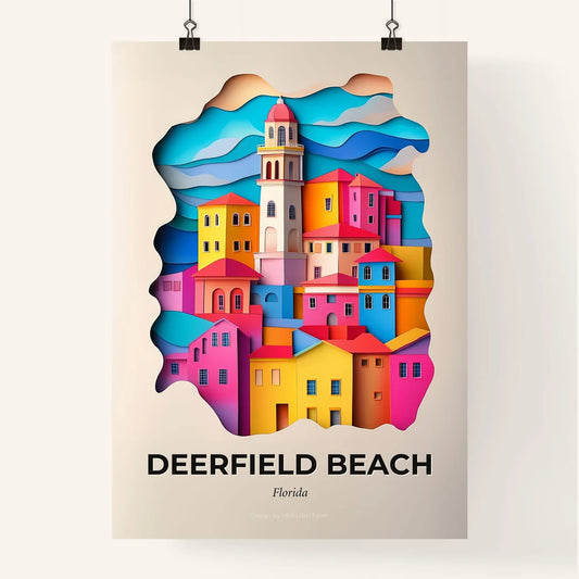 Vivid Deerfield Beach, Florida - a colorful city with a clock tower in the middle