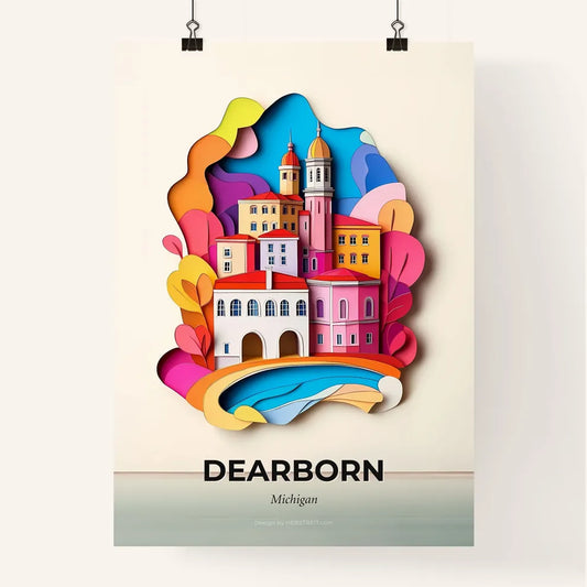 Vivid Dearborn, Michigan - a paper cut of a city with a bridge