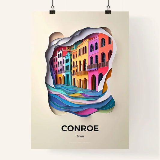 Vivid Conroe, Texas - a paper cut of a city with a river