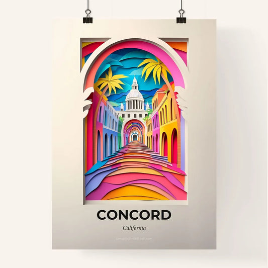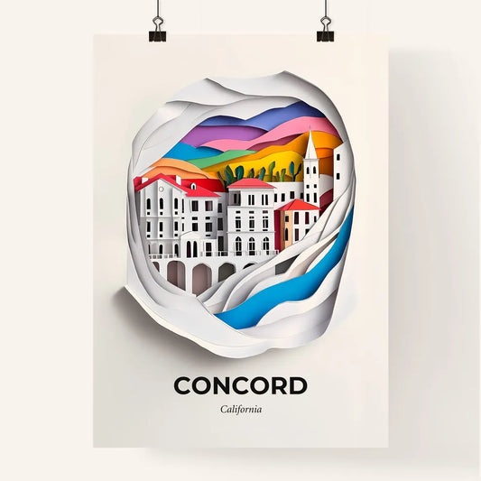 Vivid Concord, California - a colorful paper cut of a city with a church