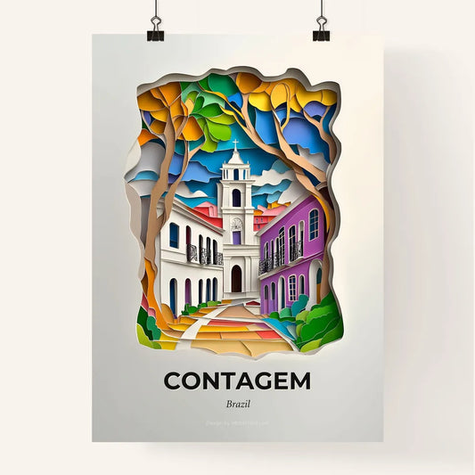 Vivid Contagem, Brazil - a paper cut of a church with a clock tower