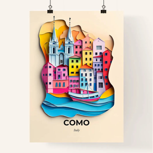 Vivid Como, Italy - a paper cut of a city with a boat in the water