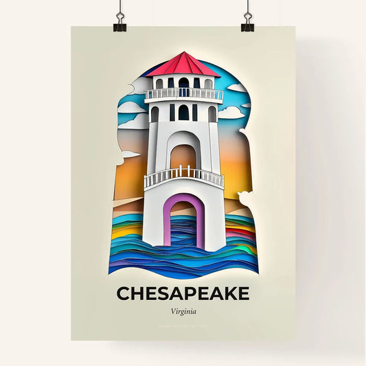 Vivid Chesapeake, Virginia - a paper cut of a lighthouse with a red roof