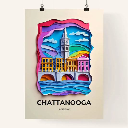 Vivid Chattanooga, Tennessee - a paper cut of a city with a clock tower