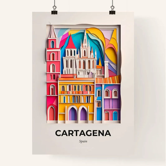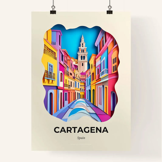Vivid Cartagena, Spain - a colorful city street with a clock tower