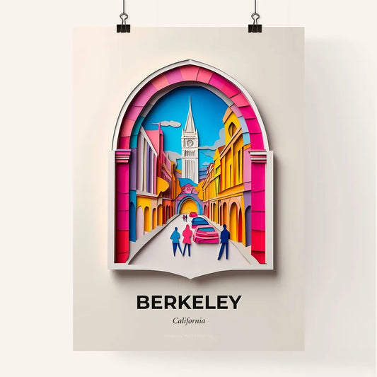 Vivid Berkeley, California - a paper cut of a city street with a clock tower