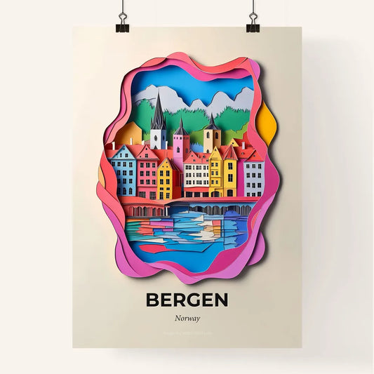 Vivid Bergen, Norway - a paper cut of a boat in a harbor