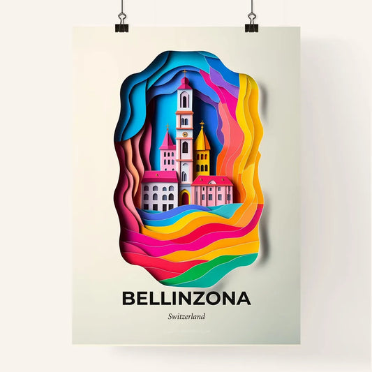 Vivid Bellinzona, Switzerland - a paper cut of a castle in a colorful landscape
