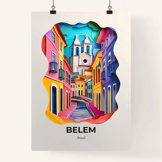 Vivid Belem, Brazil - a paper cut of a church with a rainbow sky