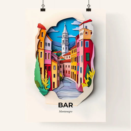 Vivid Bar, Montenegro - a paper cut of a city with a clock tower