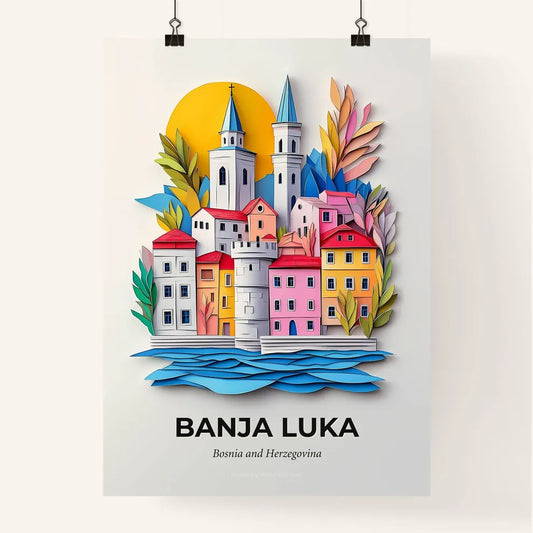 Vivid Banja Luka, Bosnia and Herzegovina - a paper cut of a city with a clock tower
