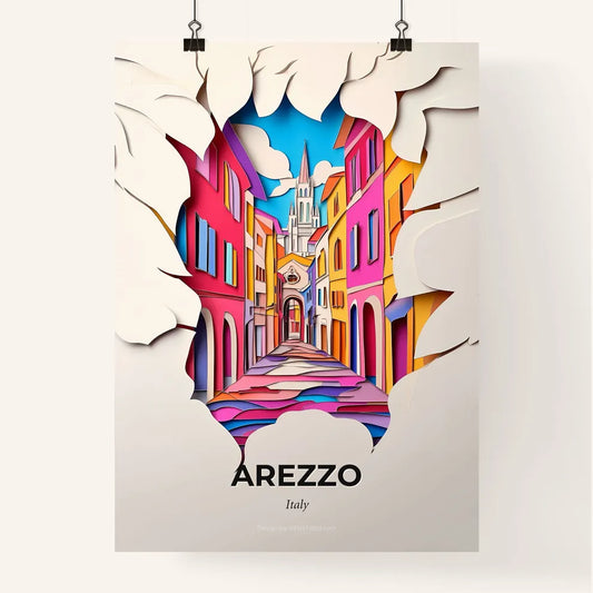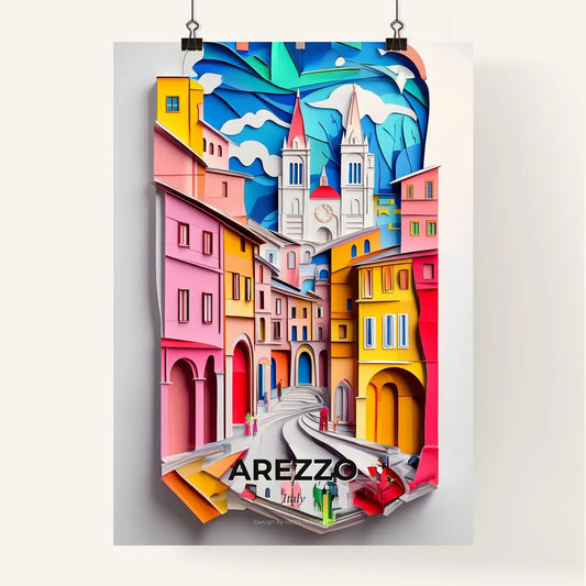 Vivid Arezzo, Italy - a paper cut of a city with a clock tower