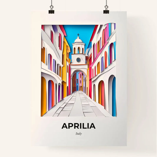 Vivid Aprilia, Italy - a colorful city street with a clock tower