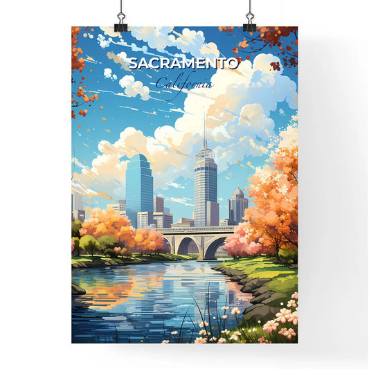 Sacramento California Skyline - A River With A Bridge And Trees And A City In The Background - Customizable Travel Gift
