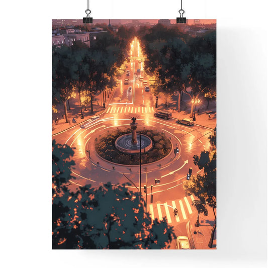 Poster of Barcelona - Art print of a city street with a fountain and cars