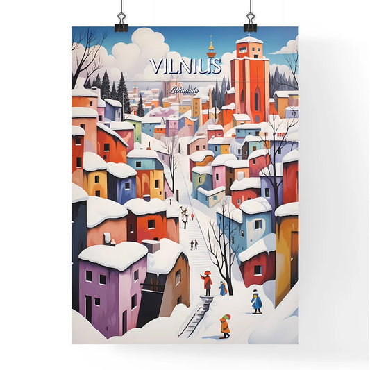 Vilnius, Lithuania - Art print of a painting of a city with snow on it