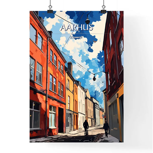 Aarhus, Denmark - Art print of a person walking down a street with buildings