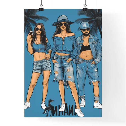 Poster with bottom text MIAMI in bold font - Art print of a group of people posing for a picture