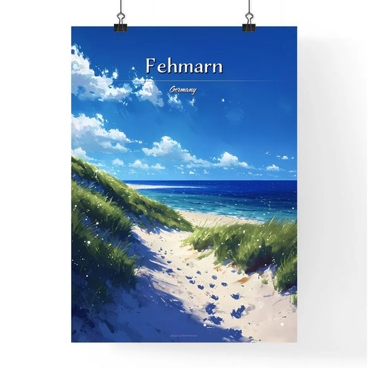 Fehmarn Südstrand, Germany (Baltic Sea) - Art print of a beach with grass and blue water