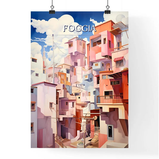 Foggia, Italy - Art print of a colorful buildings with clouds in the sky