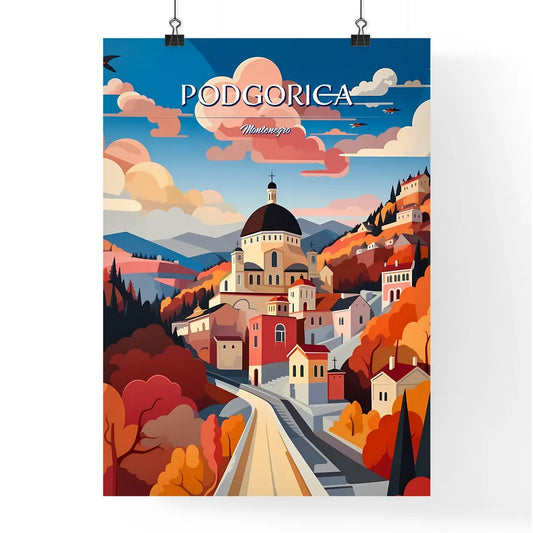 Podgorica, Montenegro - Art print of a colorful landscape with a building and trees