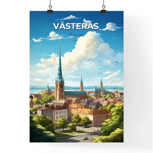 Vsters Sverige Skyline - A City With A Tall Spire And Trees - Customizable Travel Gift