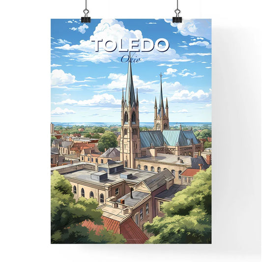 Toledo Ohio Skyline - A Building With A Steeple And Trees - Customizable Travel Gift