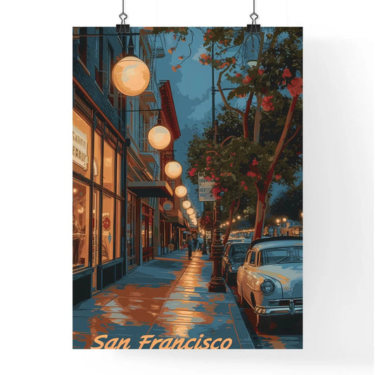Poster of San Francisco - Art print of a street with cars and trees on the side
