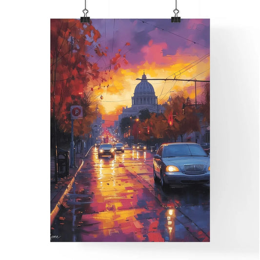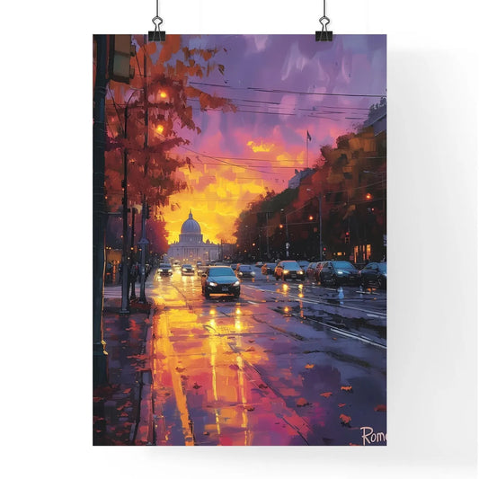 Poster of Rome - Art print of a street with cars and a dome in the background