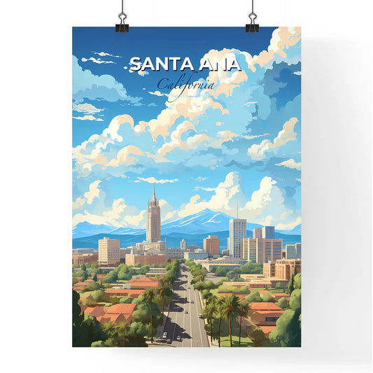 Santa Ana California Skyline - A Landscape Of A City With Trees And Mountains In The Background - Customizable Travel Gift