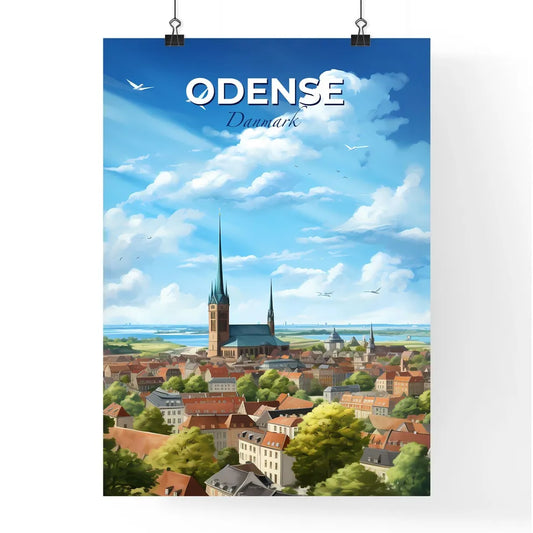 Odense Danmark Skyline - A City With A Tall Spire And Trees - Customizable Travel Gift